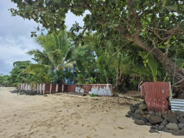 The tiny island of Nukulevu, off Tailevu in Fiji is experiencing sea level rise. The owner of the small resort on the island has to lay down coconut leaves and erect make-shift walls to prevent water from entering the property. (Photo credit: ©LouiseCruickshank)